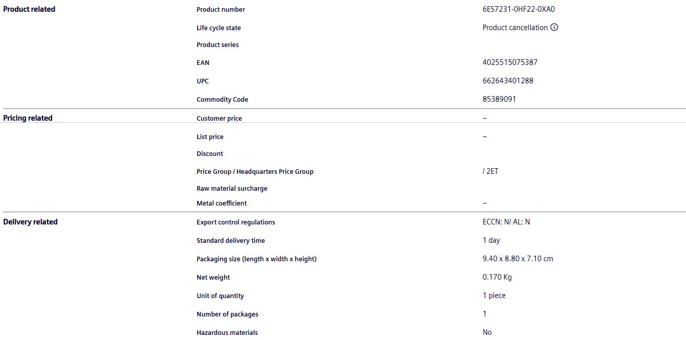 Siemens PLC module 6ES7231-0HF22-0XA0 EM231 analog module from Germany