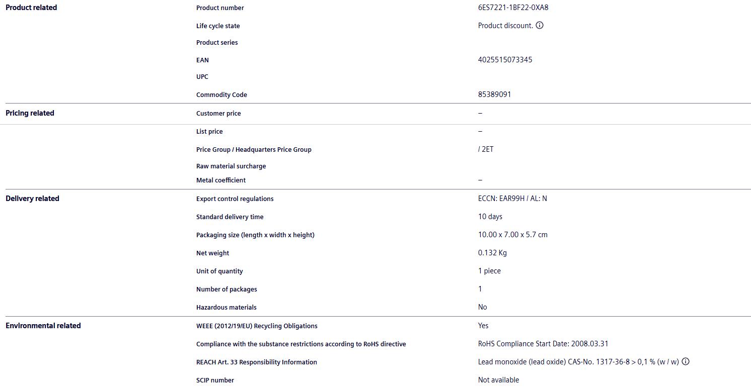 *** Spare parts *** SIMATIC S7-200 CN, digital input module EM 221, only for S7-22X CPU, 8 digital inputs, 24V DC, open collector output (P schaltend) / sinking output (M schaltend) This S7-200 CN product only has CE certification