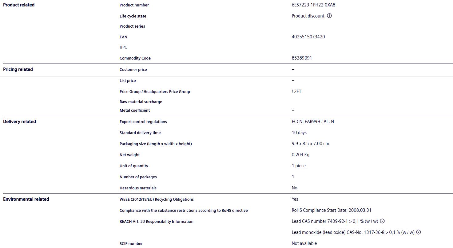 *** Spare parts *** SIMATIC S7-200 CN, digital I/O EM 223, only for S7-22X CPU, 8 DE 24V DC, sinking/sourcing, 8 DA relays, 2A/channel This S7-200 CN product only has CE certification