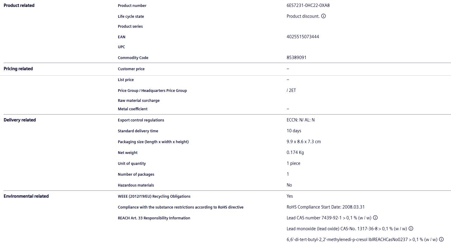 *** Spare parts *** SIMATIC S7-200 CN模拟输入 EM 231, only for S7-22X CPU, 4 AE, 0-10V DC, 12 bit converter This S7-200 CN product only has CE certification