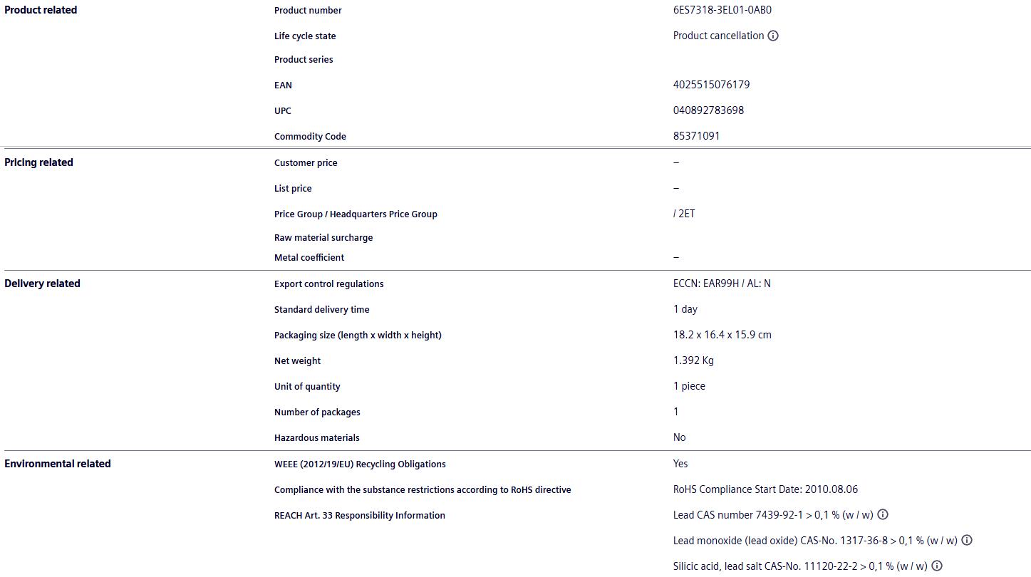Proxy Siemens PLC module 6ES7318-3EL01-0AB0 CPU317 S7-300 programmable controller