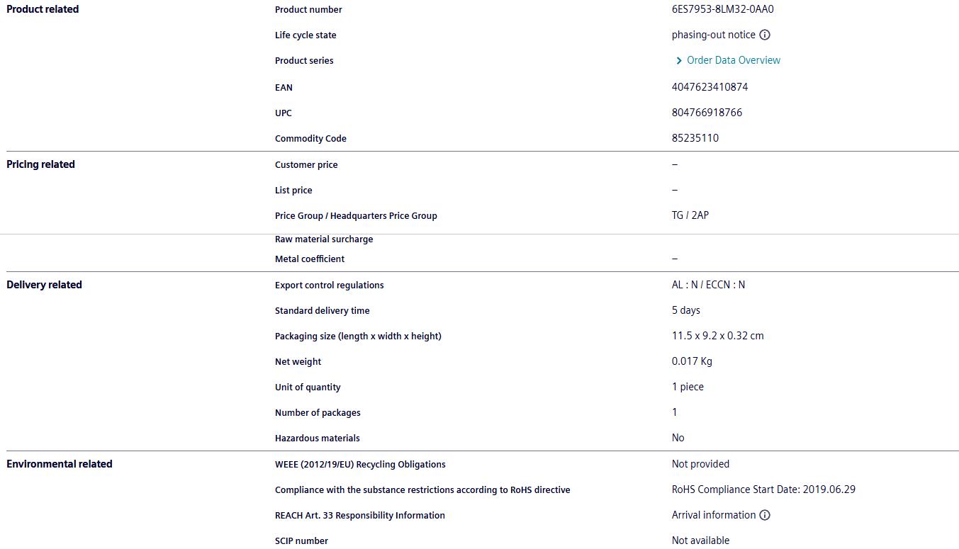 Siemens PLC 6ES7953-8LM32-0AA0 from Germany Siemens Memory Card S7-300 4MB