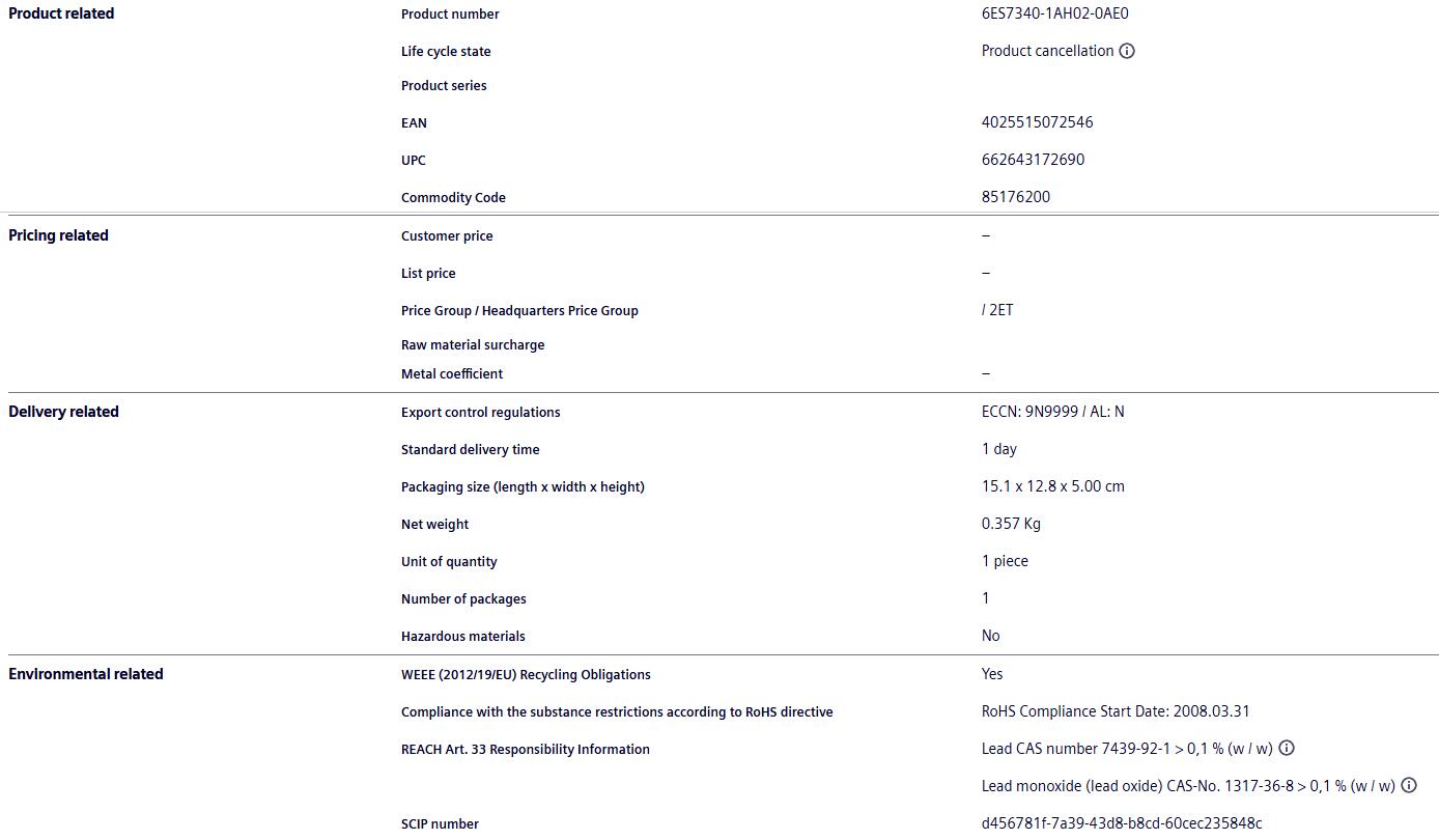 Supply Siemens PLC 6ES7340-1AH02-0AE0 Siemens Communication Module CP340