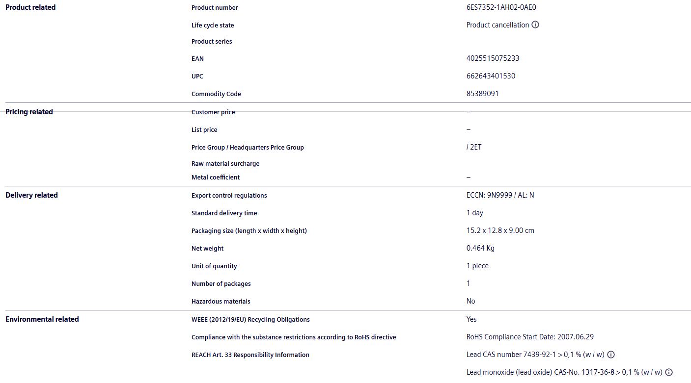 Spot Siemens PLC 6ES7352-1AH02-0AE0 Siemens Communication Module CP352