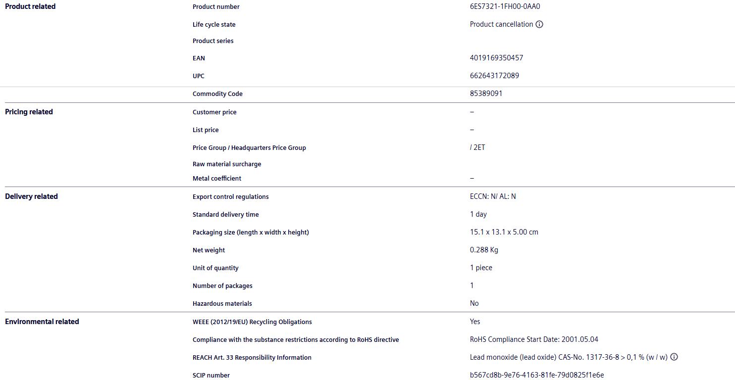 *** Spare parts *** SIMATIC S7-300, digital input SM 321, potential isolation 16 digital inputs, 120/230V AC, 1x 20 pin