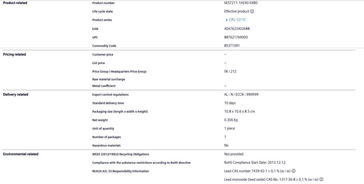 Agent Siemens PLC 6ES7211-1HE40-0XB0 S7-1200 series programmable controller