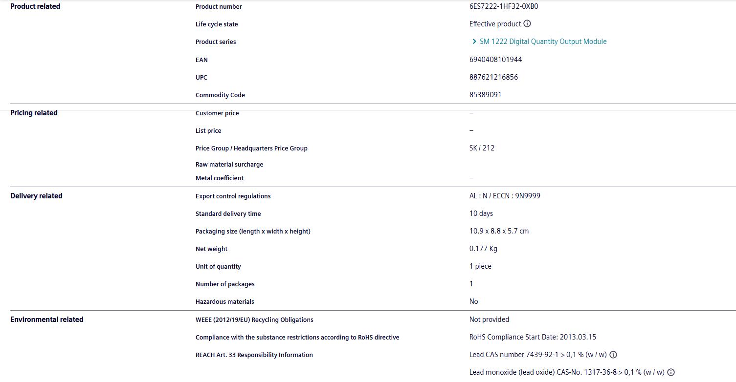 Supply Siemens PLC module 6ES7222-1HF32-0XB0 expansion module digital input module