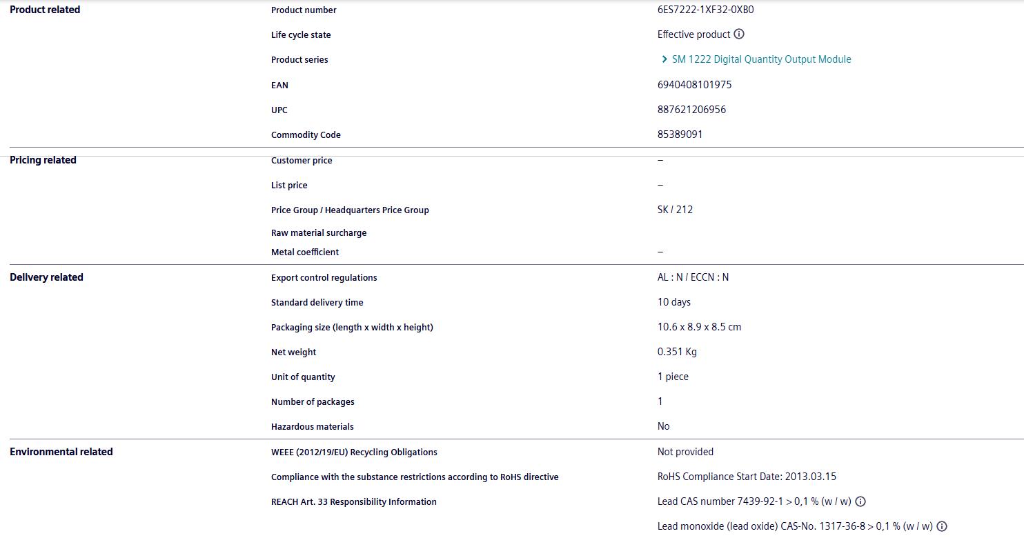 SIMATIC S7-1200, digital output SM 1222, 8 DO, relay conversion contact