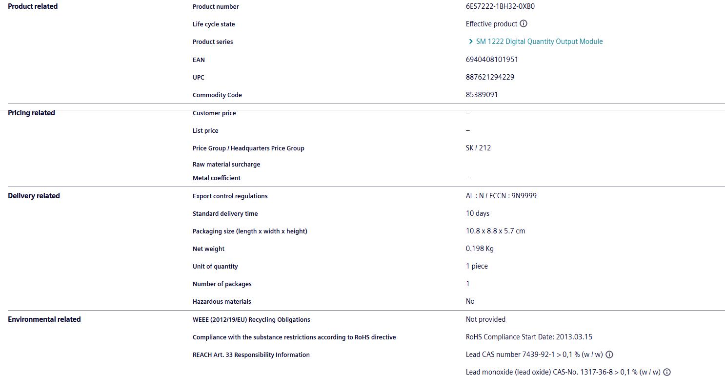 SIMATIC S7-1200, digital output SM 1222, 16DO, 24V DC, transistor 0.5A
