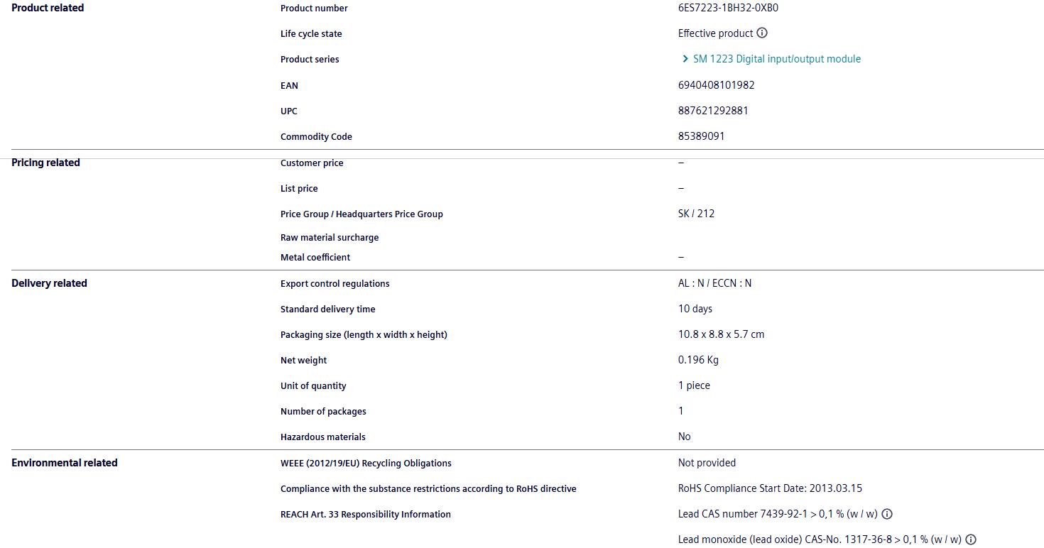 Spot Siemens PLC module 6ES7223-1BH32-0XB0 expansion module digital input module
