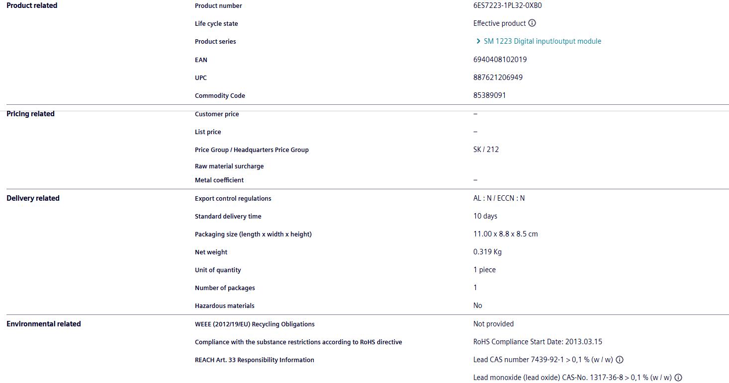New Siemens PLC Module 6ES7223-1PL32-0XB0 Expansion Module Digital Input Module