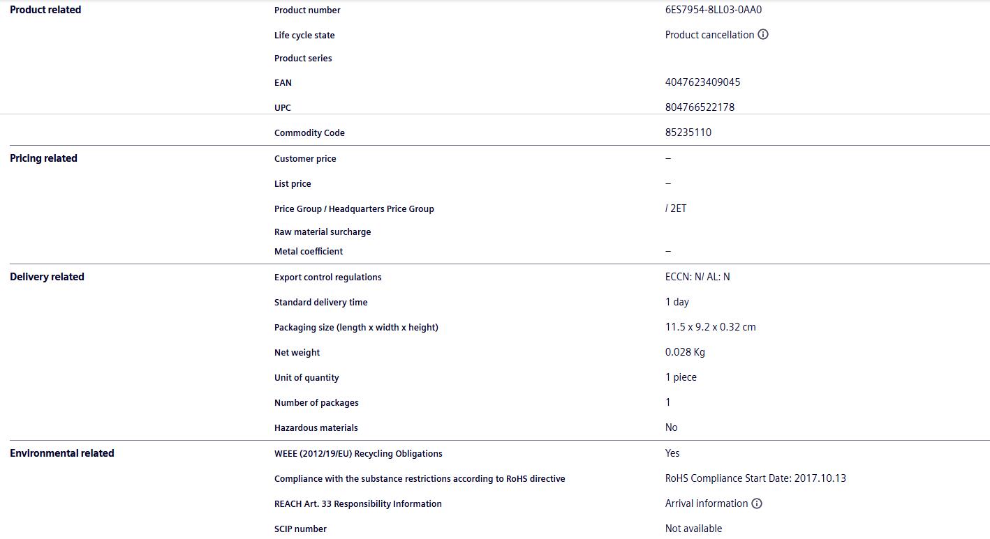 *** Spare parts *** SIMATIC S7, memory card for S7-1×00 CPU, 3,3V Flash, 256 MB