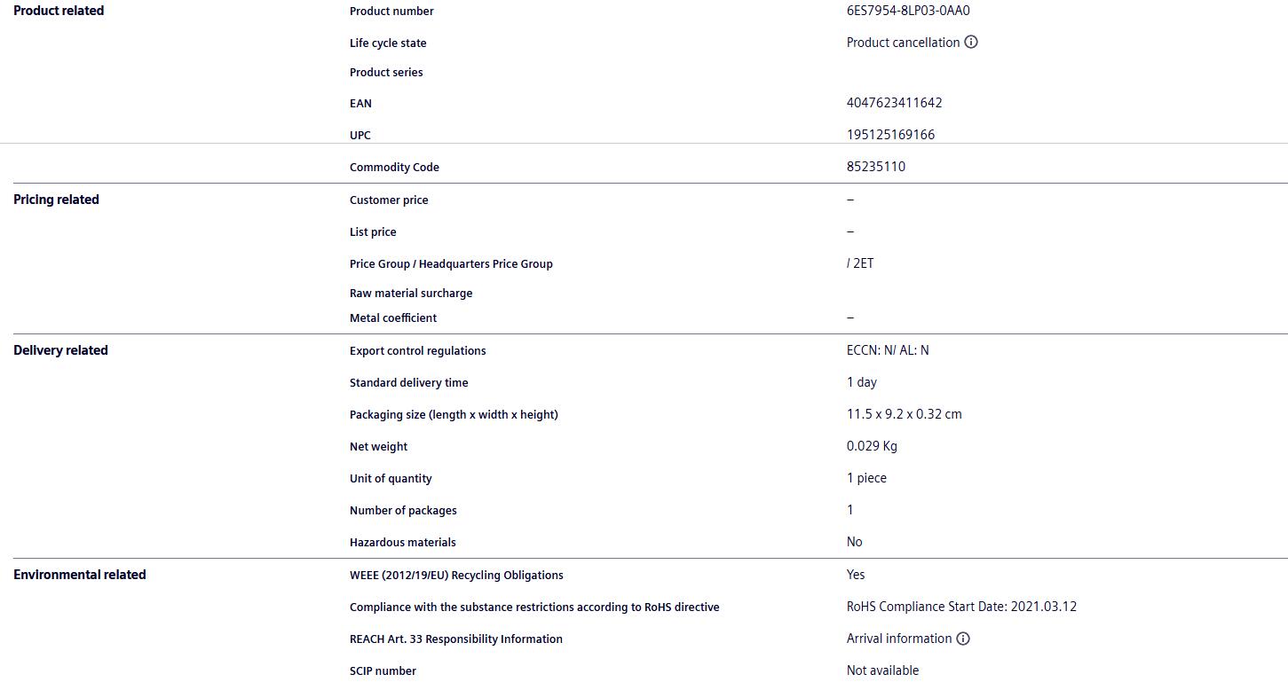 *** Spare parts *** SIMATIC S7, memory card for S7-1x 00 CPU, 3.3V Flash, 2 GB