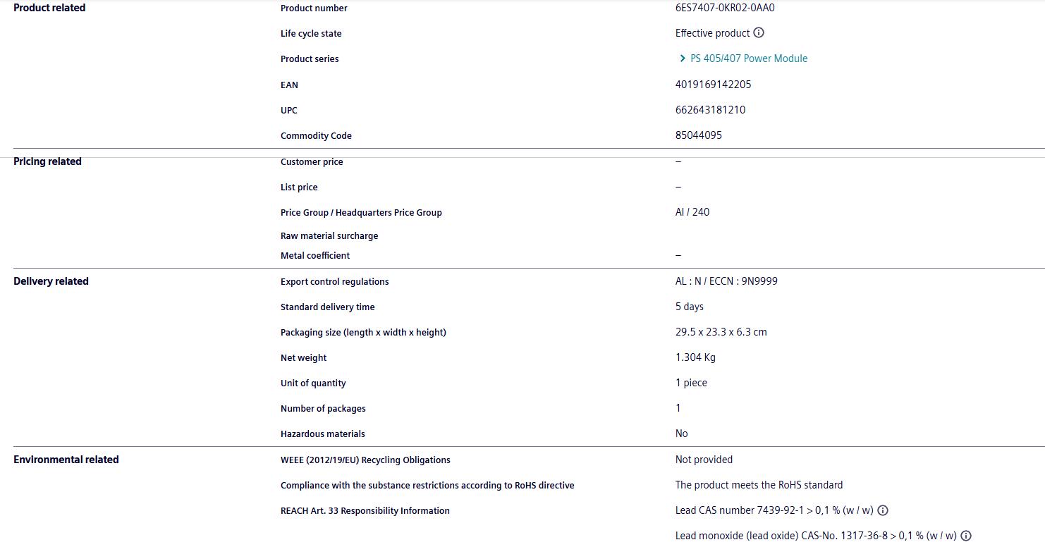 SIMATIC S7-400, power supply PS407; 10A, wide voltage range, UC 120/230V, 5V/10A DC, for redundant application occasions
