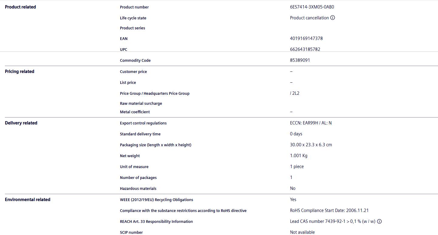 Agent Siemens PLC module 6ES7414-3XM05-0AB0 S7-400 programmable controller