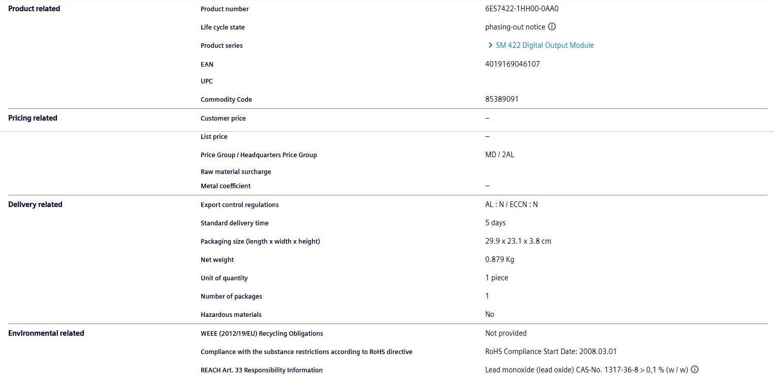 SIMATIC S7-400, digital output SM 422, potential isolation 16 digital outputs; 5..230V AC, 5A relay