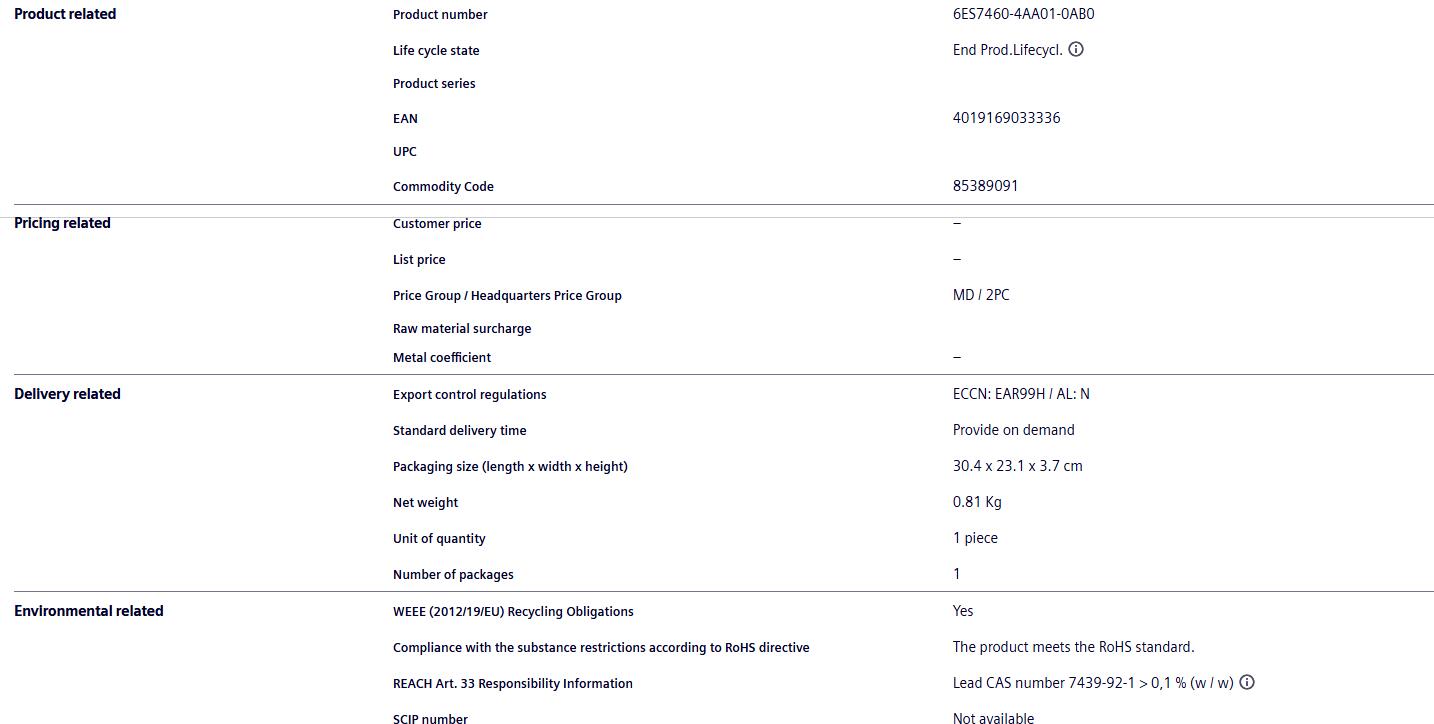 ********** Spare parts ********* SIMATIC S7-400, connecting components Send IM 460-4 for distributed coupling, maximum 600 m without K bus