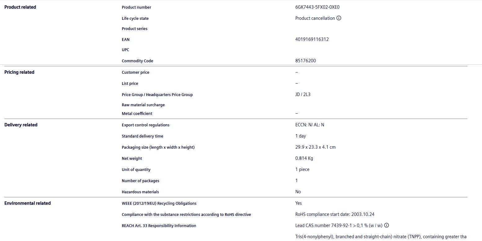 ********** Spare parts ********* Communication processor CP 443-5 Basic, for connecting SIMATIC S7-400 to PROFIBUS FMS, S5 compatible, PG/OP and S7 communication.