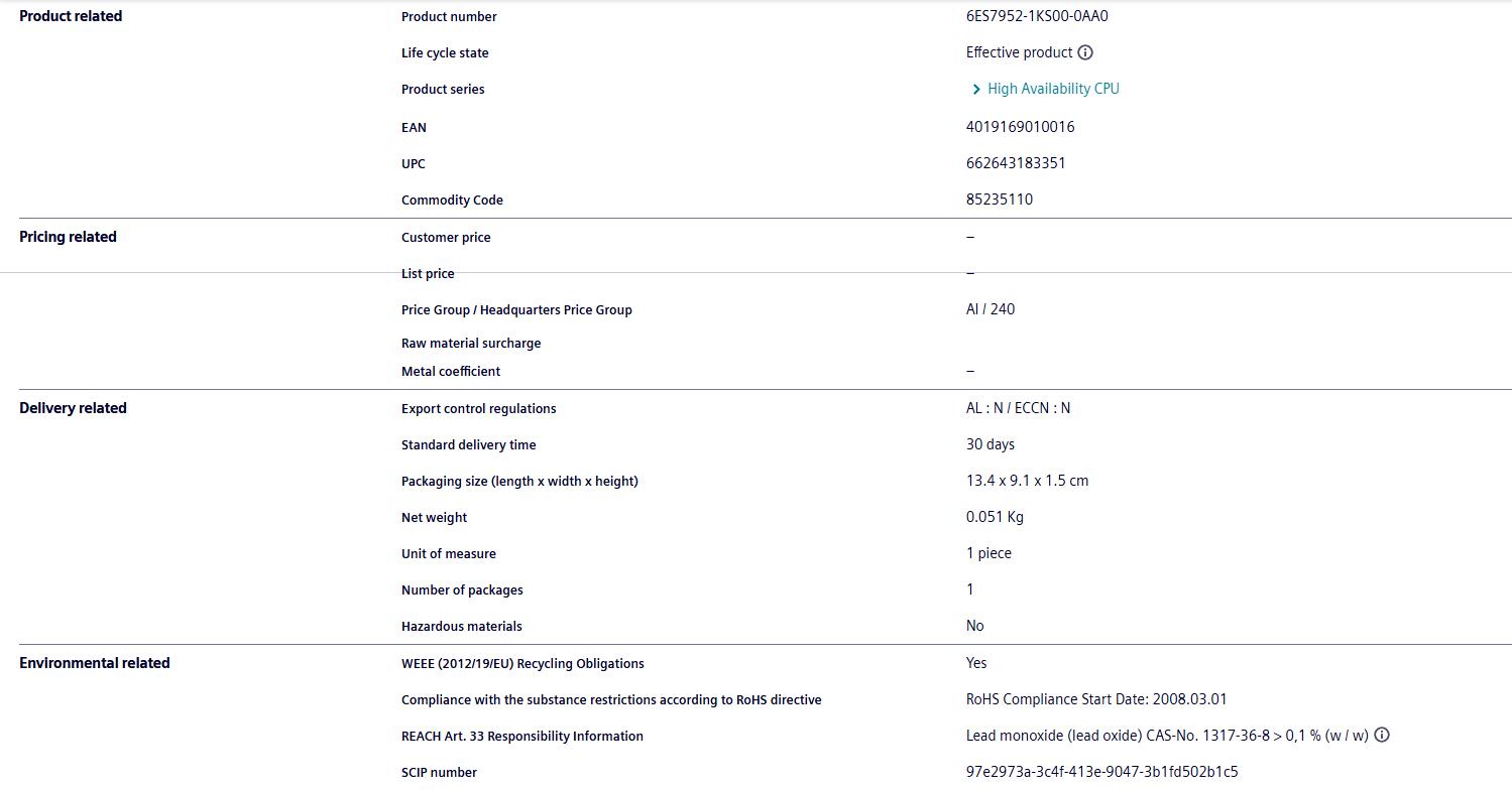 Proxy Siemens PLC module 6ES7952-1KS00-0AA0 S7-400 Siemens storage card