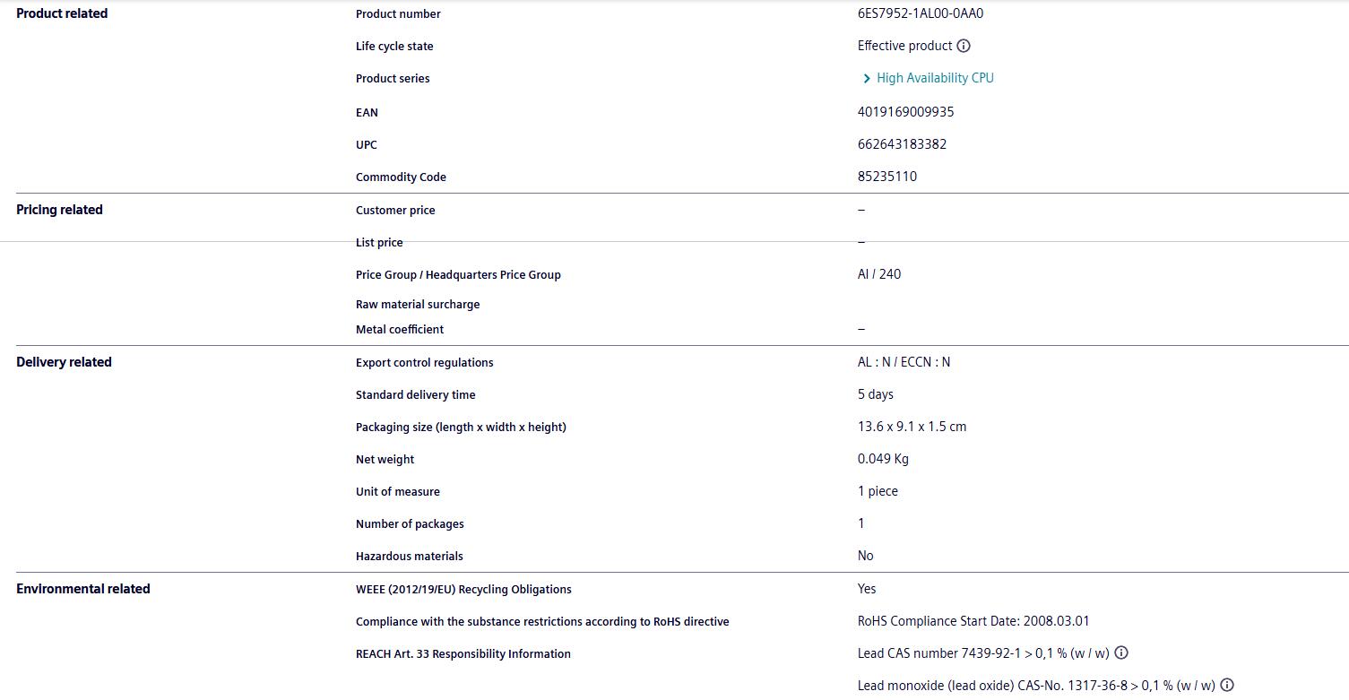 Spot Siemens PLC module 6ES7952-1AM00-0AA0 S7-400 Siemens storage card