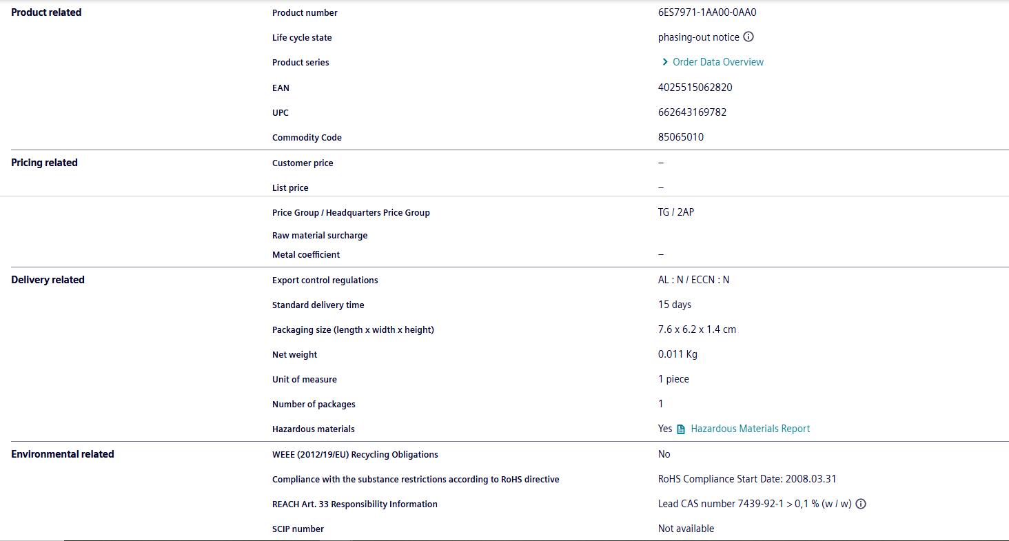 New Siemens PLC module 6ES7971-1AA0-00AA0 S7-400 Siemens battery