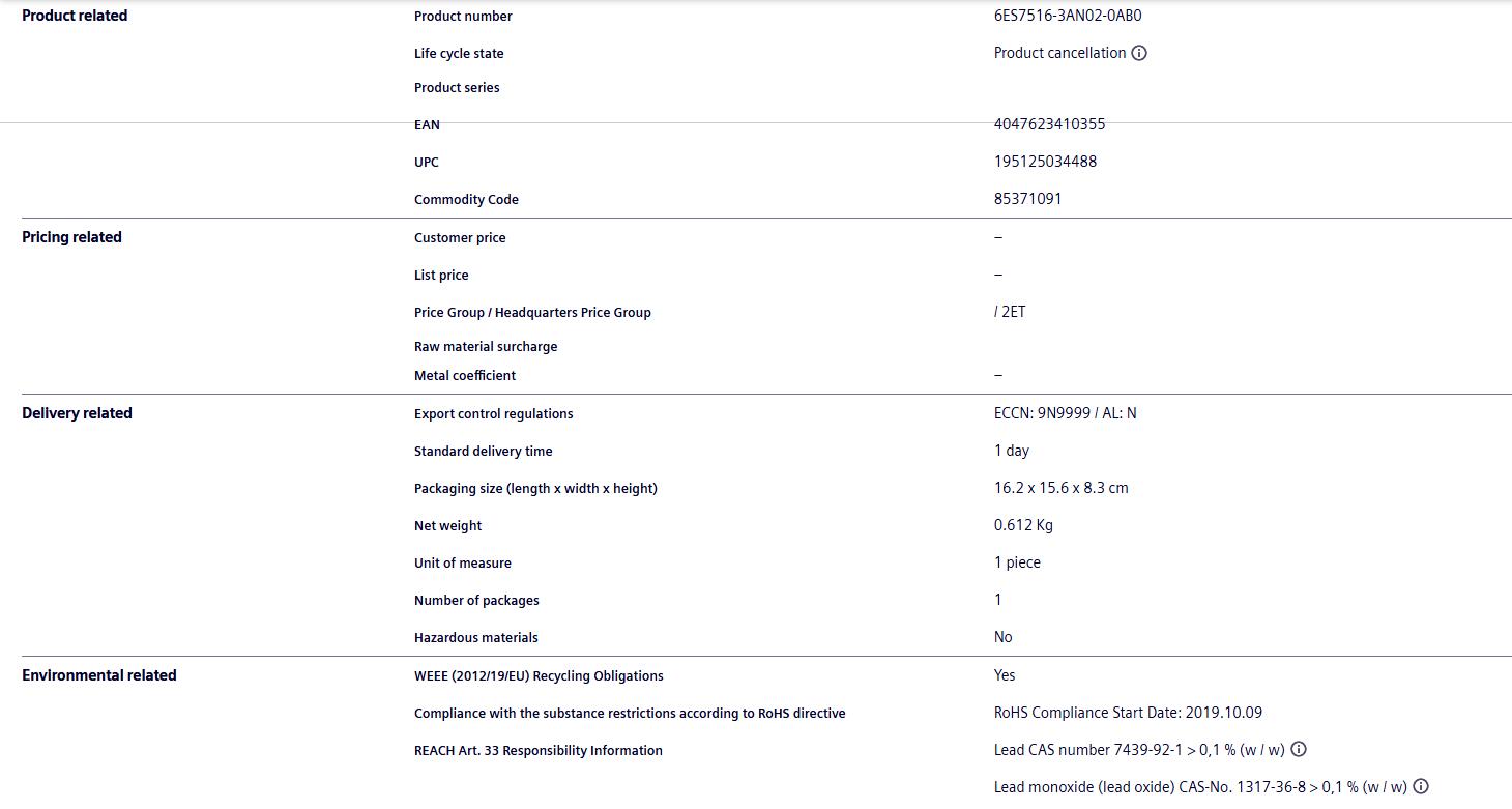 Siemens PLC module 6ES7516-3AN02-0AB0 S7-1500 Siemens programmable module from Germany