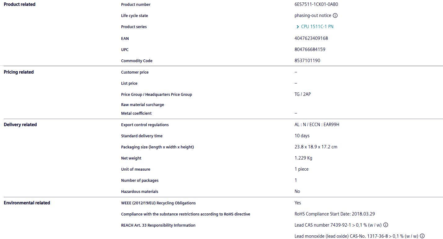 Spot Siemens PLC module 6ES7511-1CK01-0AB0 S7-1500 Siemens programmable module