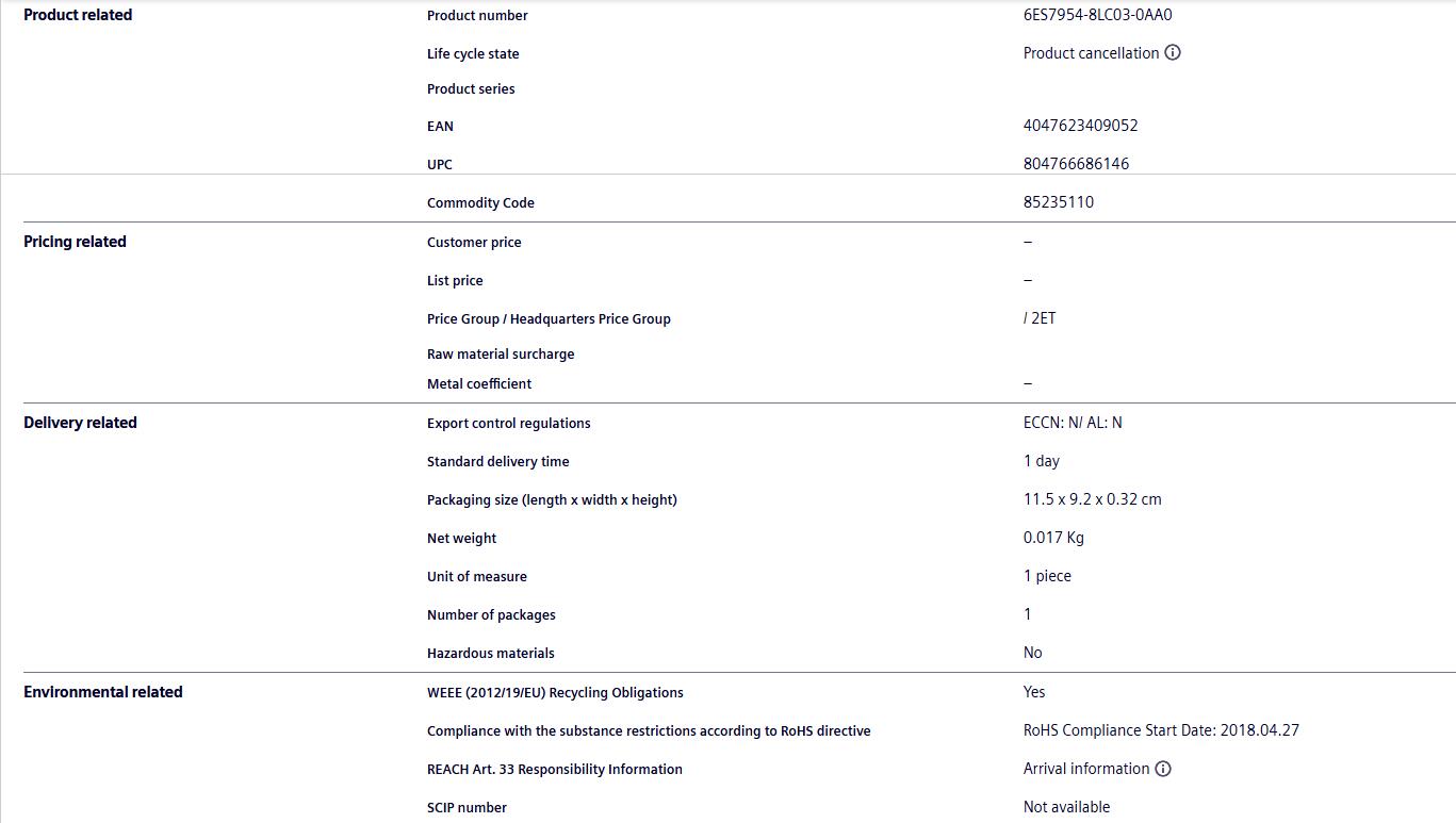 Spot Siemens PLC module 6ES7954-8LC03-0AA0 S7-1500 Siemens storage card