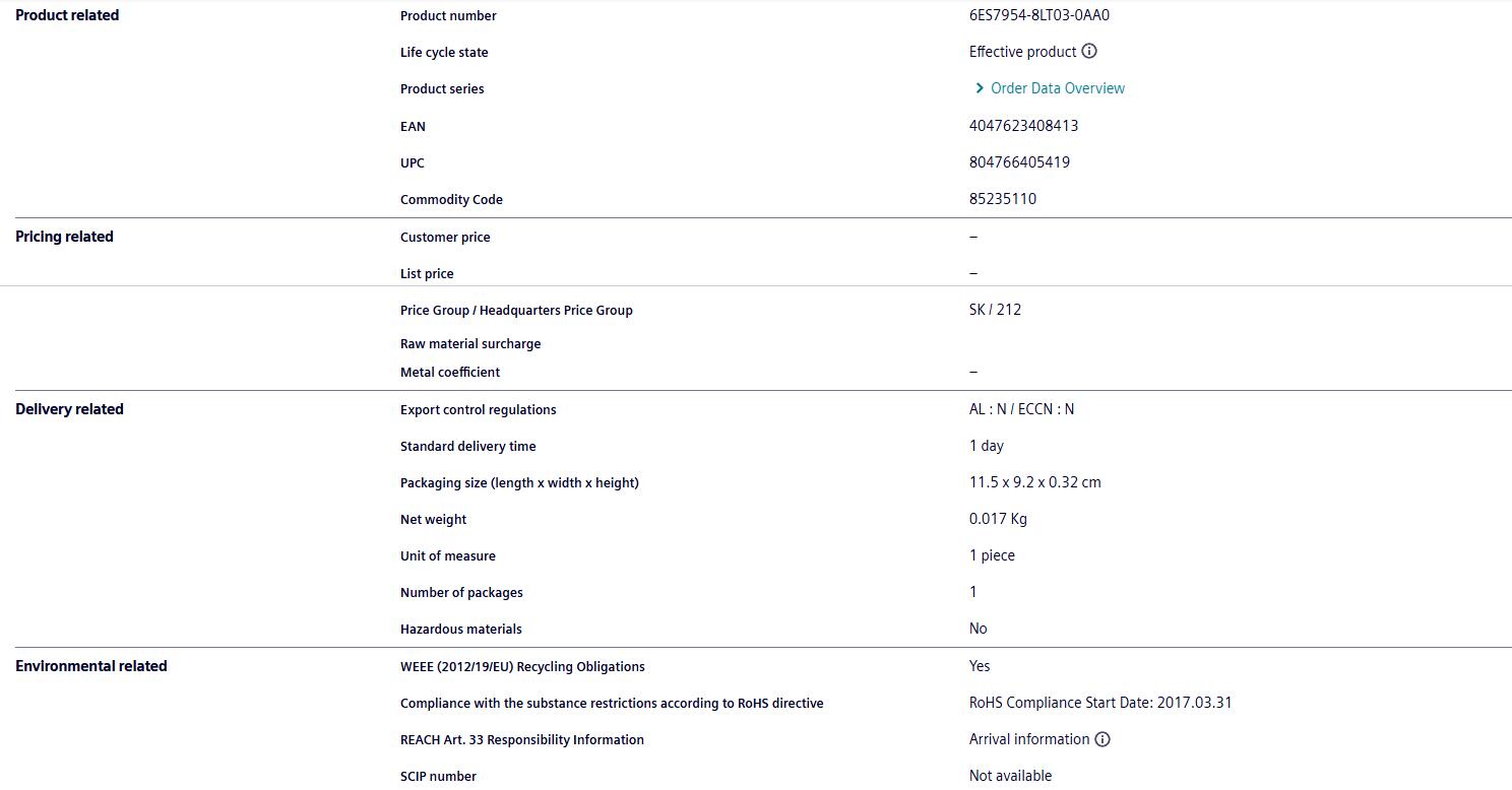 Sales of Siemens PLC module 6ES7954-8LT03-0AA0 S7-1500 Siemens memory card