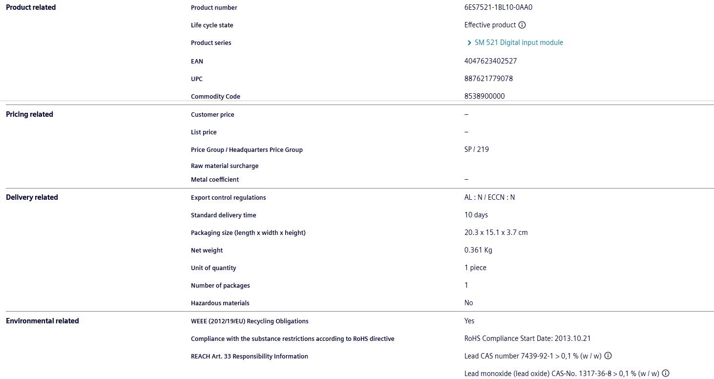 Proxy Siemens PLC module 6ES7521-1BL10-0AA0 S7-1500 Siemens expansion module