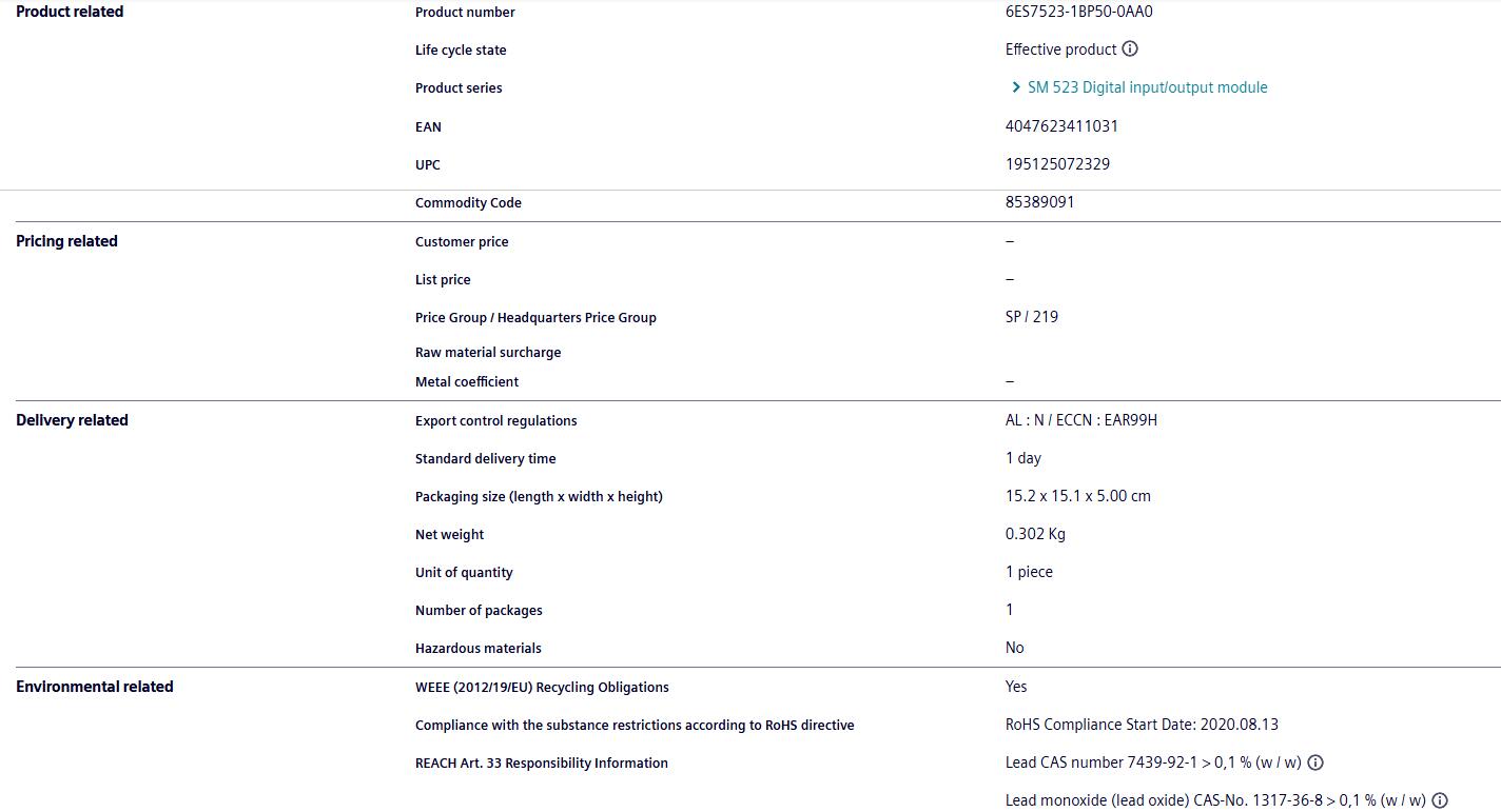Sales of Siemens PLC module 6ES7523-1BP50-0AA0 S7-1500 Siemens expansion module