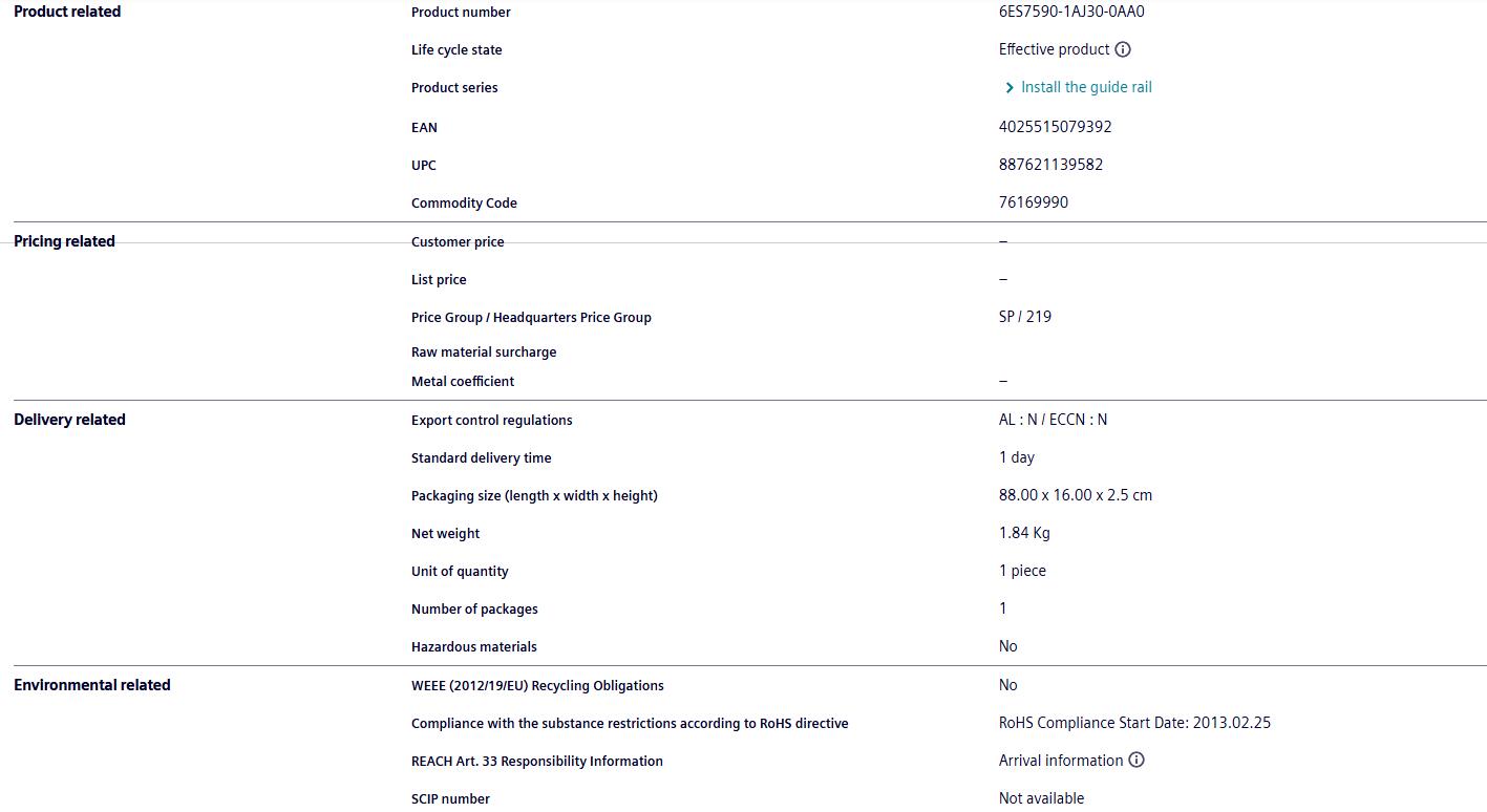Sales of Siemens PLC module 6ES7590-1AJ30-0AA0 S7-1500 Siemens rail
