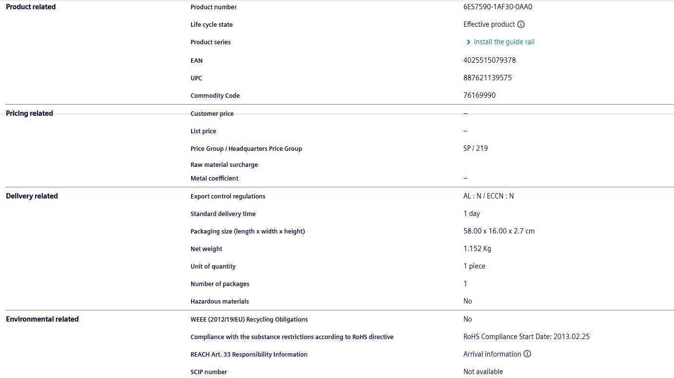 Spot Siemens PLC module 6ES7590-1AF30-0AA0 S7-1500 Siemens rail