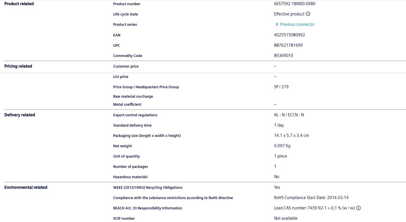 Spot Siemens PLC module 6ES7592-1BM00-0XB0 S7-1500 Siemens rail