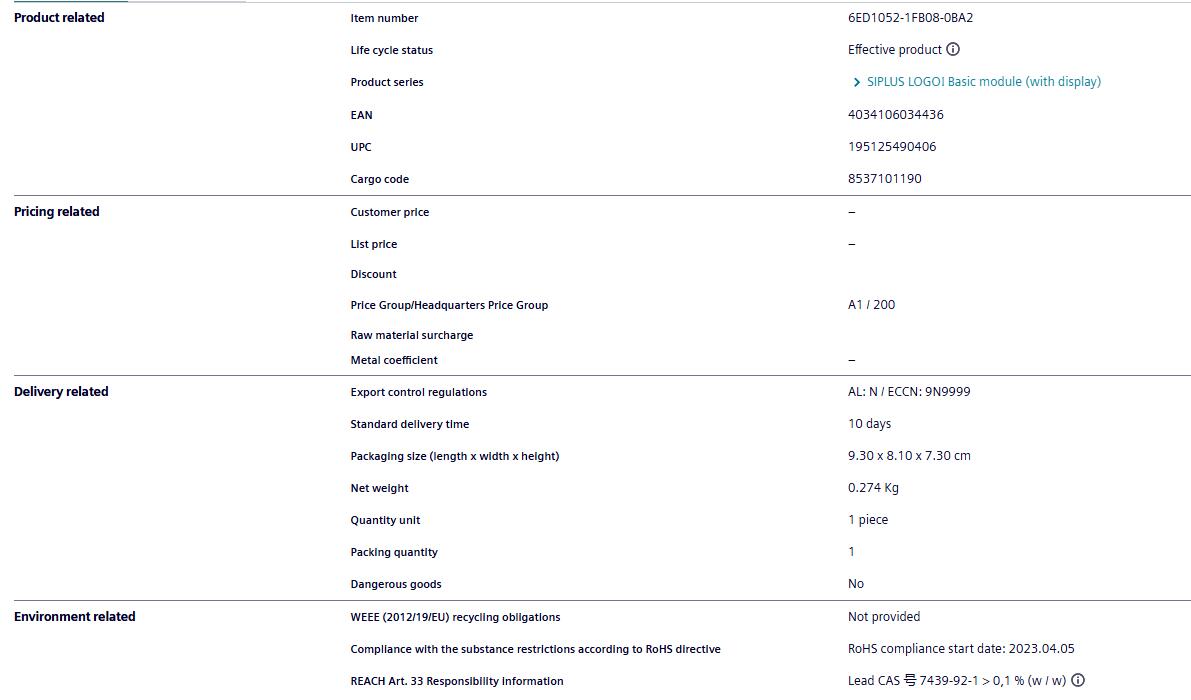 LOGO! 230RCE, logic module, Displ. SV/I/O: 115V/230V/relay; 8 digital inputs/4 digital outputs, memory 400 blocks, modularly expandable, Ethernet, integrated web server, data logging, user-defined web pages, standard microSD card, for LOGO! Soft Comfort V8.4 and above to run older projects, cloud connectivity, MQTT in all LOGO! 8.4 Basic equipment
