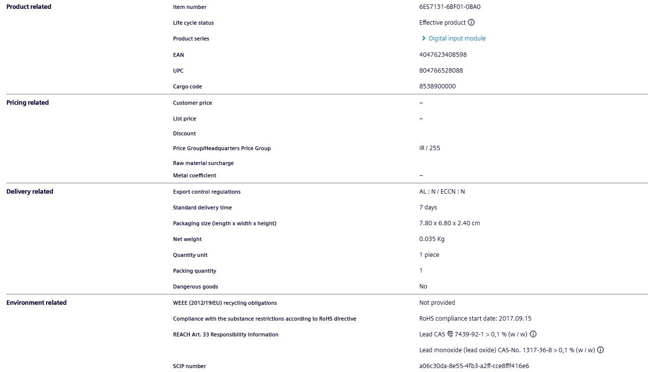 SIMATIC ET 200SP, Digital input module, DI 8x 24V DC Standard, type 3 (IEC 61131), sink input, (PNP, P-reading), Packing unit: 1 piece, fits to BU-type A0, Colour Code CC01, input delay time 0,05..20ms, module diagnostics for: short-circuit of sensor supply, wire break, supply voltage