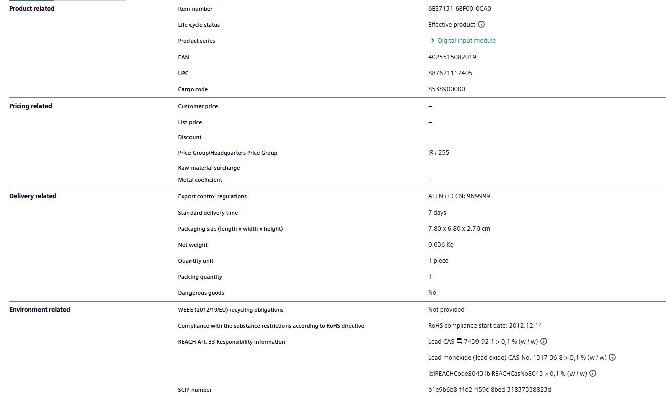 Sales of Siemens PLC module 6ES7131-6BF00-0CA0 switch input