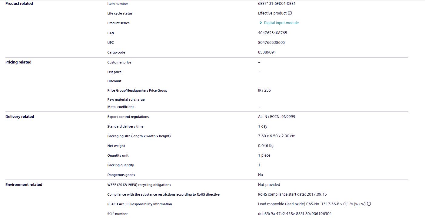Spot Siemens PLC module 6ES7131-6FD0B-0BB1 switch input