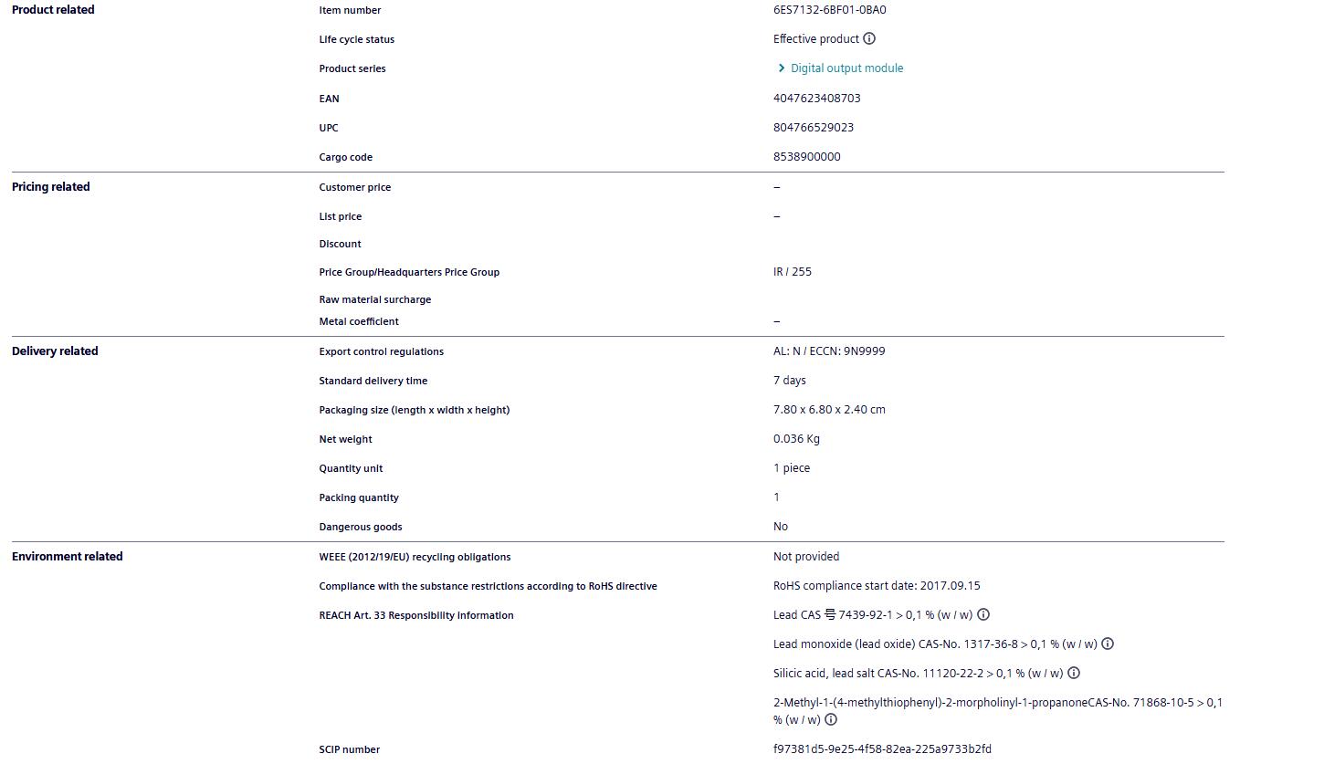 Spot Siemens PLC module 6ES7132-6BF01-0BA0 switch output