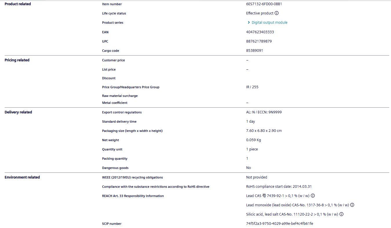 Sales of Siemens PLC module 6ES7132-6FD00-0BB1 switch output