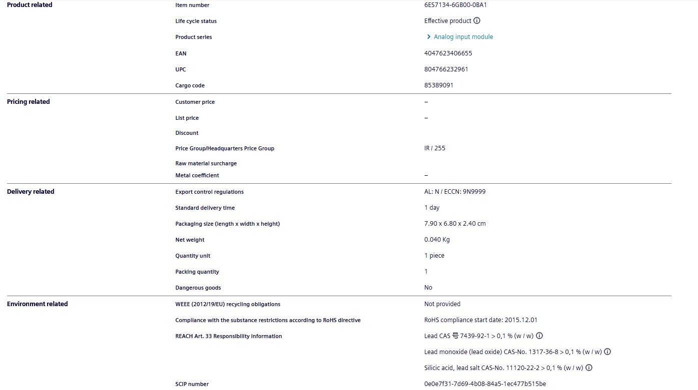 Proxy Siemens PLC module 6ES7134-6GB00-0BA1 analog input
