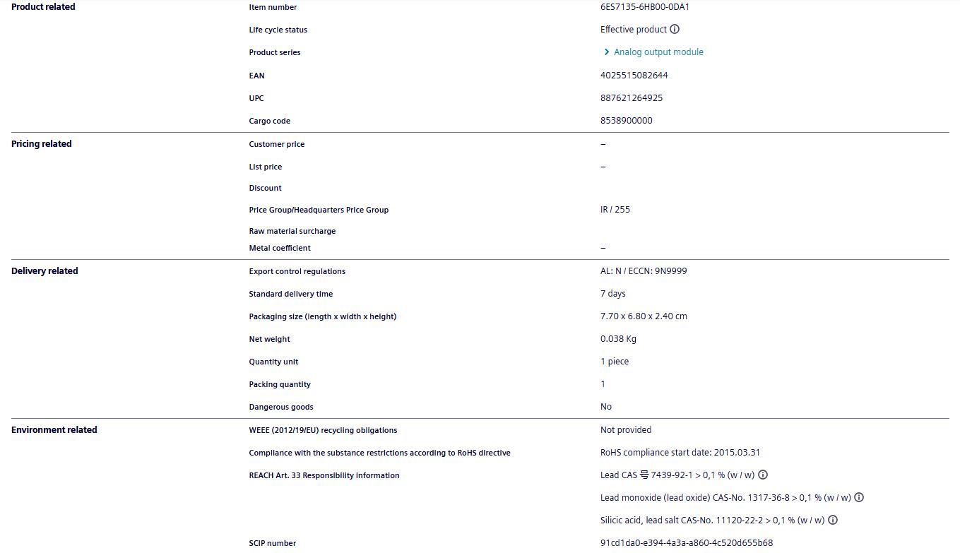 Proxy Siemens PLC module 6ES7135-6HB00-0DA1 analog output