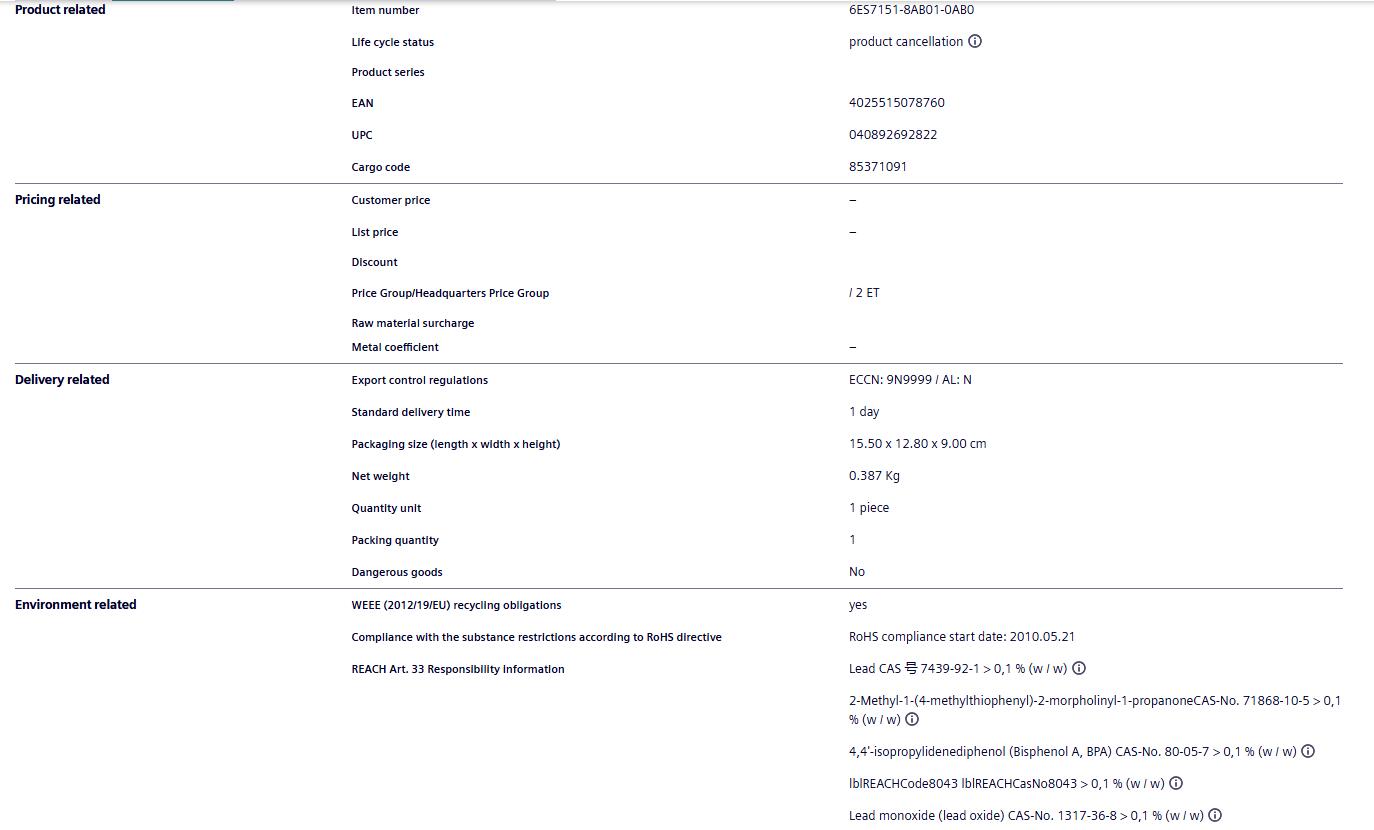 *** Spare part *** SIMATIC DP, IM151-8 PN/DP CPU for ET200S, 192 KB work memory, internal PROFINET interface (with three RJ45 interfaces) as PROFINET IO controller without battery requires MMC