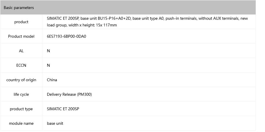 SIMATIC ET 200SP BU type A0 BU15-P16+A0+2D 6ES7193-6BP00-0DA0