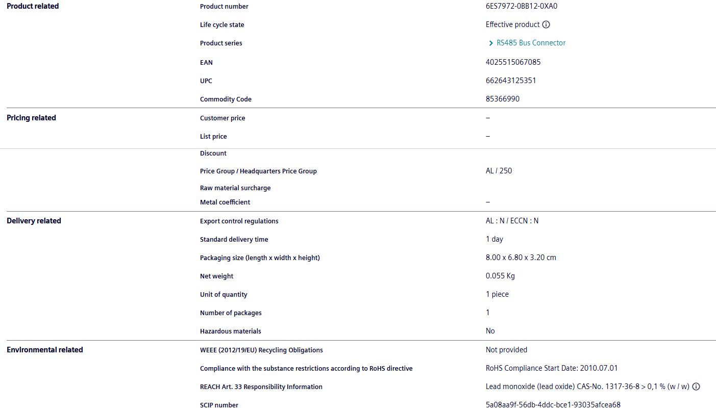 Spot Siemens PLC module 6ES7972-0BB12-0XA0 Siemens interface module