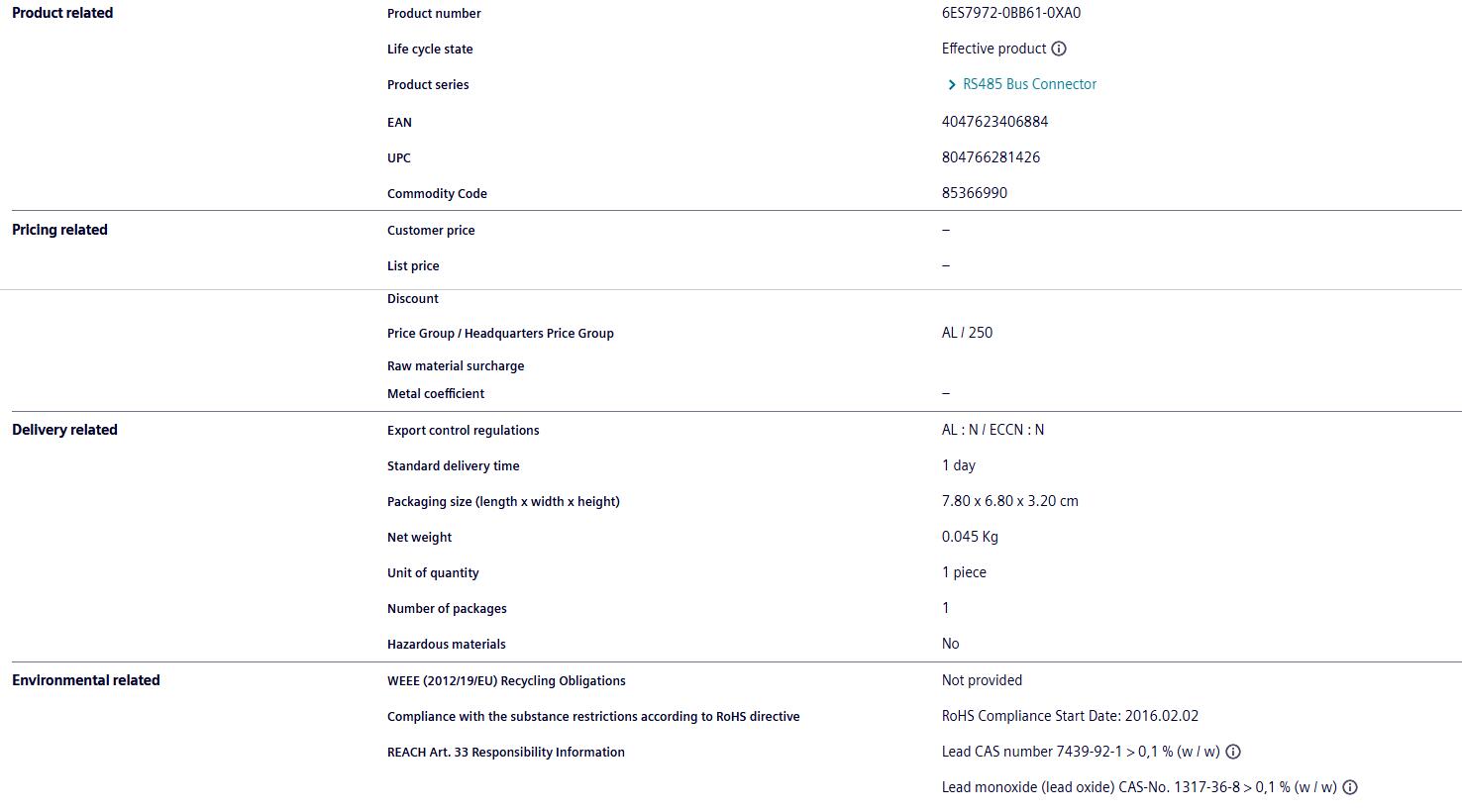 Siemens PLC module 6ES7972-0BB61-0XA0 Siemens interface module from Germany