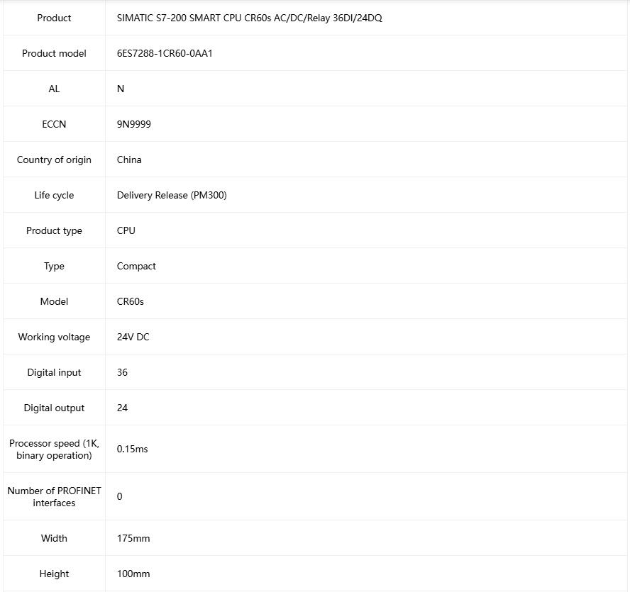 SIMATIC S7-200 SMART CPU CR60s AC/DC/Relay 36DI/24DQ 6ES7288-1CR60-0AA1