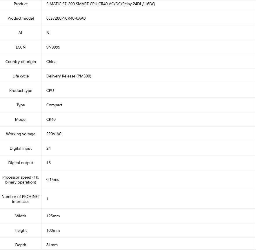 SIMATIC S7-200 SMART CPU CR40 AC/DC/Relay 24DI / 16DQ 6ES7288-1CR40-0AA0
