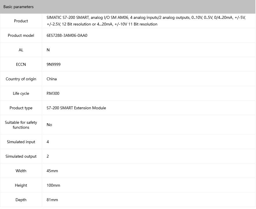 SIMATIC S7-200 SMART SM AM06, AI 4×12 bit, AQ 2×11 bit 6ES7288-3AM06-0AA0